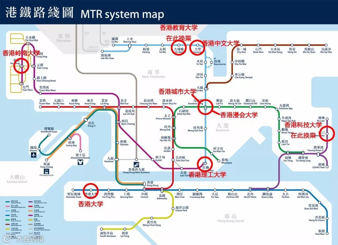 香港临海,面积不足北京的1/6,但共有18个辖区,确实是名副其实的麻雀虽小五脏俱全!错综复杂的港铁线路图,是不是都看晕了呢。小编特别为大家标注了一个香港八大院校地铁位置图(,是不是一目了然呢~