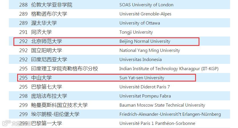 (2019年QS世界大学排行榜,北师大和中山大学名次)
