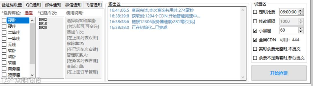 输入你要抢的所有车次信息,加入抢票序列,可以多车次同时开抢