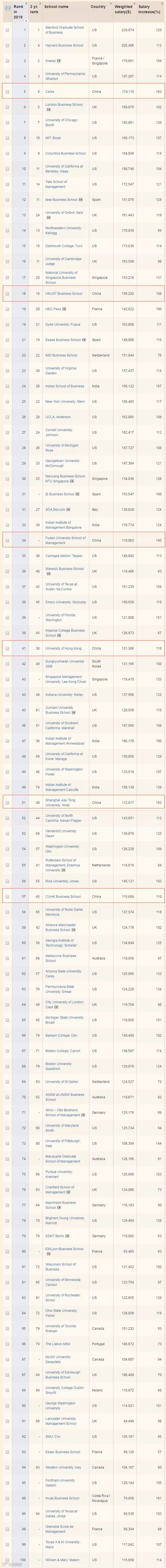 1月28日,英國《金融時報》(Financial Times)發布了2019年全日制MBA的全球百強榜單。