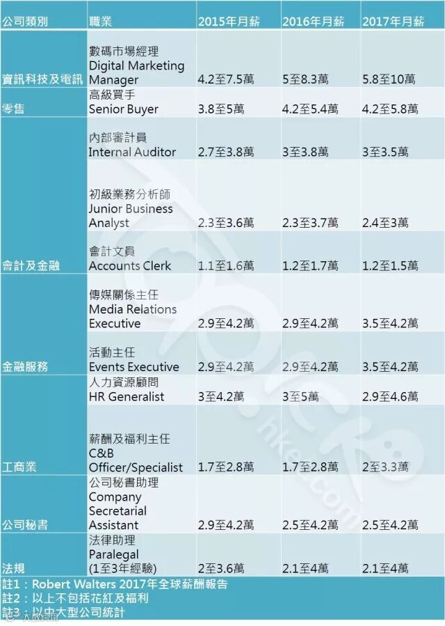近来,香港人才管理协会及香港浸会大学工商管理学院人力资源策略及发展中心共同合作完成了一份《2017年香港、内地及澳门薪酬及福利调查报告》,内容主要涵盖了对建筑、工程、款待及餐饮、资讯及通讯、物流及运输、非政府组织、专业服务等11个行业的96间机构和员工约11.55万人的调查。