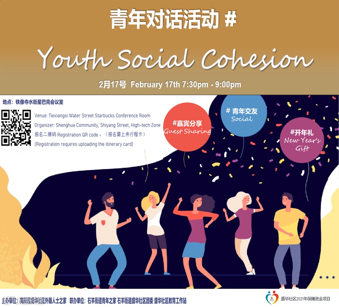 *在高新区石羊街道盛华社区的支持下,我们又一次将聚焦对准了青年群体。开放性的青年社交如何在不失趣味的前提下,携带更多的职场正能量及对生活与世界的想象——这是我们期待在本系列探索的社区话题,因此继2021年留学生交流会后我们持续致力于为中外青年提供交流平台。