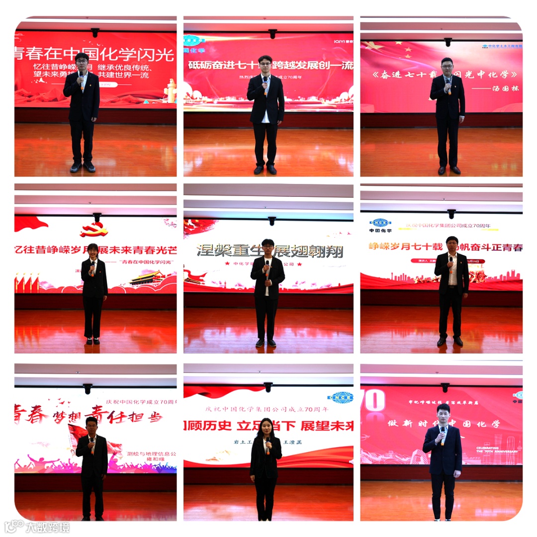 比赛中,各参赛选手紧紧围绕集团公司成立70年来所取得的历史成就和宏伟发展历程,立足岗位,以个人成长故事、榜样模范事迹,将新一代青年人在奋斗中释放青春激情、追逐青春理想的故事用不同方式表现出来,展现了中国化学青年一代充满朝气与激情,有活力、有梦想、斗志昂扬的精神风貌,也表达了与中国化学同发展共成长的决心和斗志。