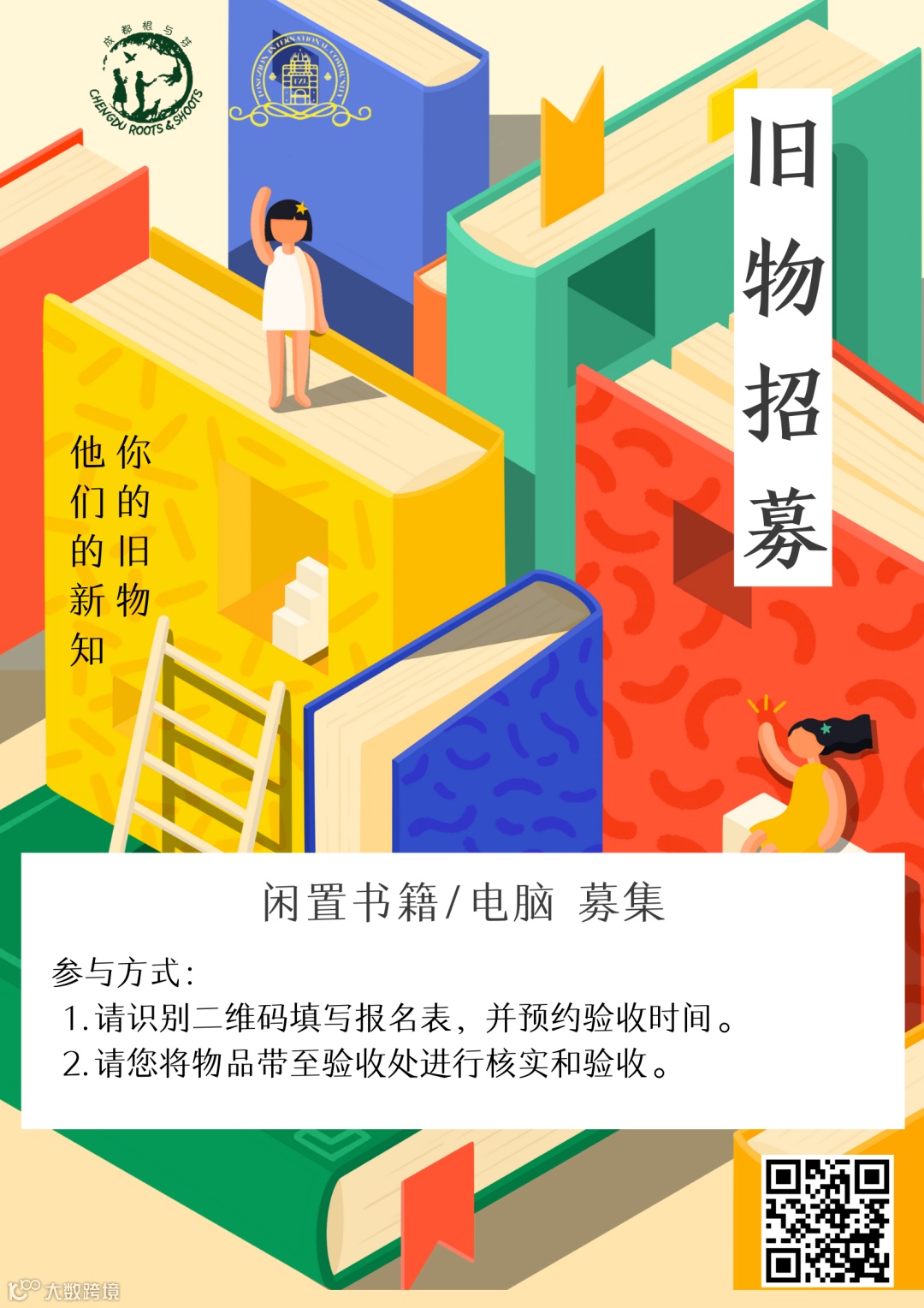 To spread the love and kindness of the international community of Tongzilin, Tongzilin International Community Center (TZL CC) is collaborating with Chengdu Roots & Shoots, calling for donations of unused books, computers and tablets, from today to June 19th, 2020.