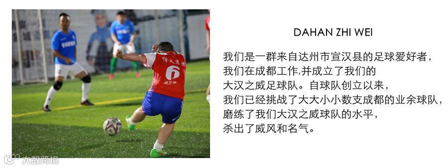 "We are the Great Han Chinese FC (otherwise known as Dahan Power) came about originally as a group of football-lovers from Dazhou. We all work in Chengdu now. Since we founded our team, we have already challenged many big and small football teams across Chengdu. So, we've gotten pretty good. With the wind beneath our wings we shall succeed!!!"