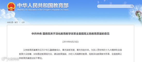 2019年7月份,《关于深化教育教学改革全面提高义务教育质量的意见》中提到:义务教育学校不得引进境外课程、使用境外教材。