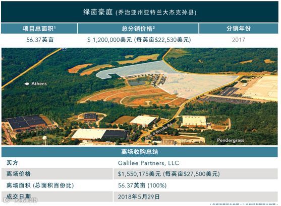 这是一处位于美国亚特兰大杰克逊的一块56英亩的土地,就是图中带阴影的部分;2017年5月我们花120万美元拿下,2018年5月底,155万美元卖出,一年的时间市值29%