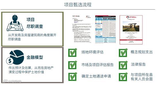 看来和国内的开发过程差不多,但是需要投资人了解美国当地的政策、法令和规划等、一般需要3-5年的时间。以下是和顿的选地尽职调查程序介绍:
