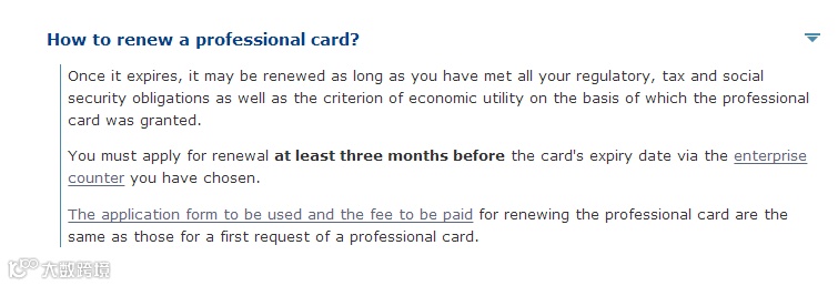 布鲁瑟尔经济发展局还专门对职业卡(老板卡, professional card) 设立一个专栏