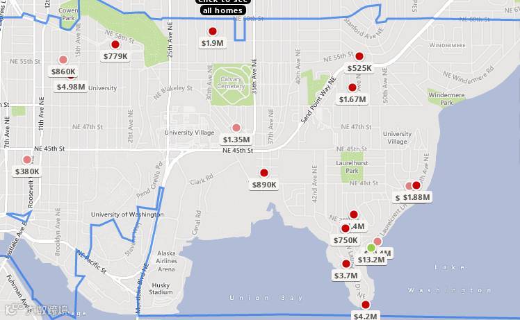 这是在美国需要打着灯笼找的学区,单价不到30万给孩子占个学区的位置,看看周边的房价到多少啦? 1320万美元的都有,花不到30万入住富人区是什么感觉?上面是zillow网的查询结果。整个学区只有不到20套房产在售。