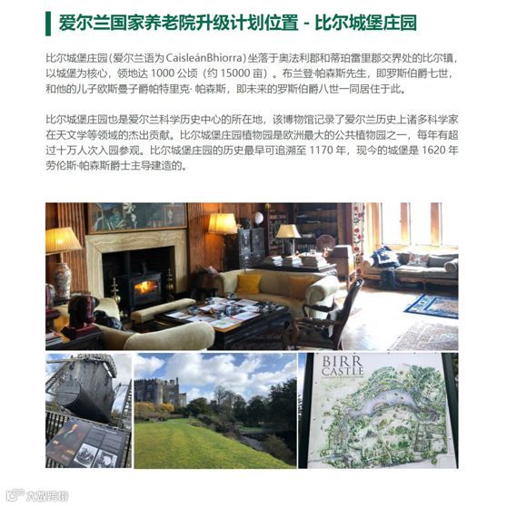 该债权基金的借款方是一家开发商,开发的物业用于做养老院;该养老院的项目是建立在一个占地1500亩的庄园土地上,庄园属于一家爱尔兰已经传承8代的世家。该世家在养老院开发过程中以土地出资的形式在开发商中占有股份,可想而知该世家在担保体系中也是一个非常重要角色(担保文件需在律师陪同下现场提供)。