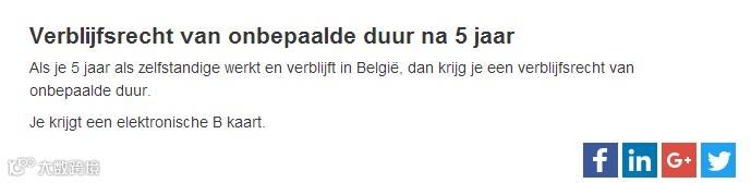 在比利时居留和为自己工作满5 年之后,您将获得比利时无限期居民许可。