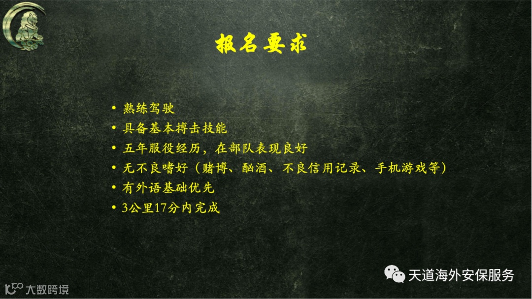 导读:天道海外安保服务公司现就公司发展需要进行人才招聘,有意者请仔细浏览下方介绍,根据个人情况酌情报名联系。