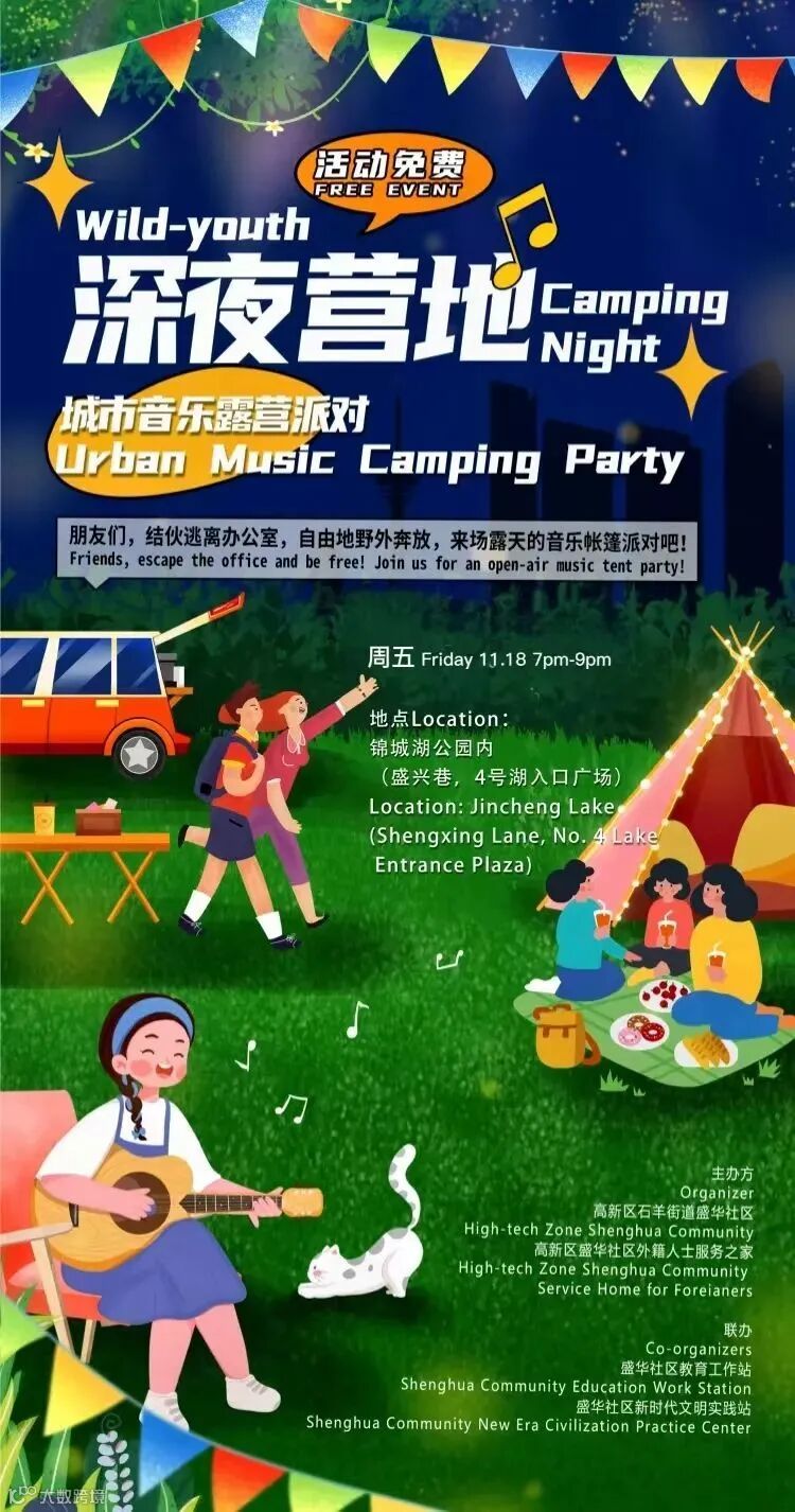 Feel the atmosphere of the camp Chill, feel the joy of camping in the wilderness in the Shenghua community, set up a gantry array with old and new friends, lie on folding chairs and socialize without obstacles, listen to music, taste special drinks, and enjoy the city night view!