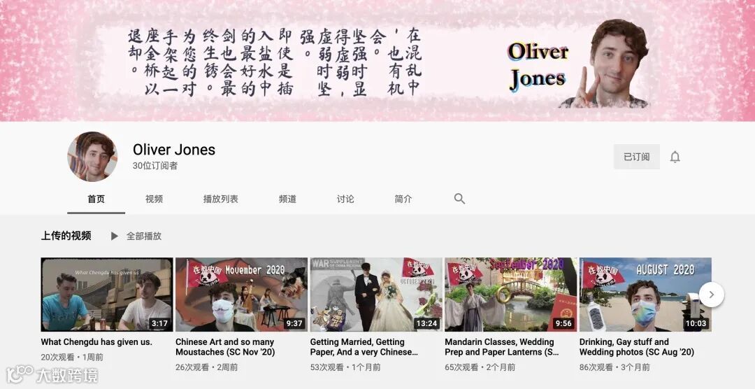 我是Oliver Jones,一个已经在成都生活了3年的英国人,目前正在苦学中文,视频创作是今年开发的一个新爱好。