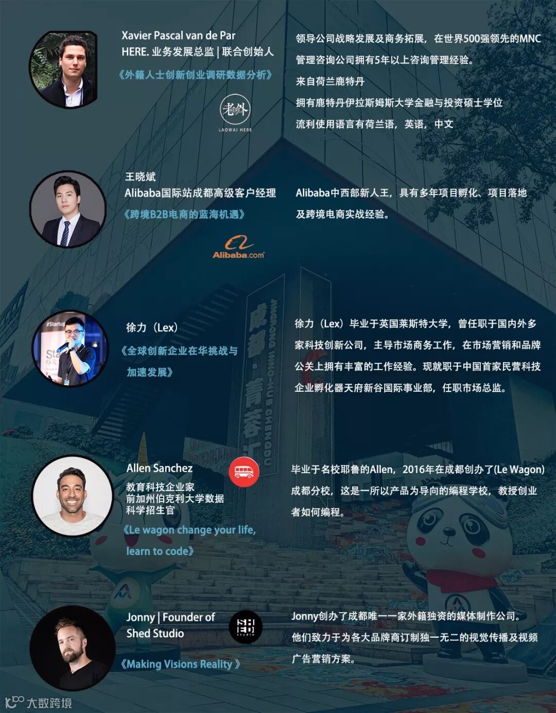 外籍团队/个人:我们邀请到了知名孵化器项目运营人,为相关外籍创新创业项目提供咨询及规划;我们将邀请资深外籍创业团队与你分享创业心得与技巧;现场有成都顶级的孵化器及投促机构,为优质项目提供资源对接。