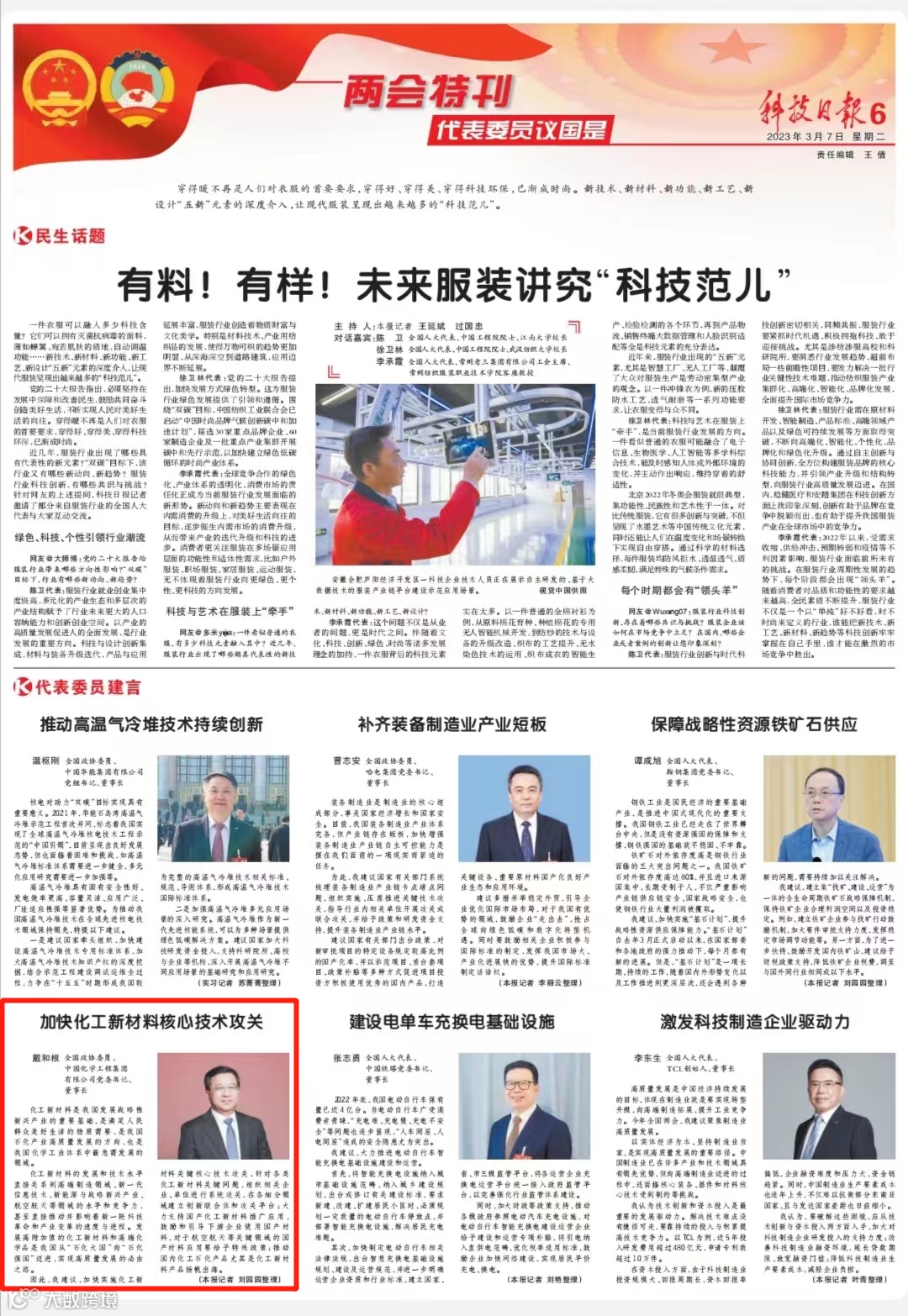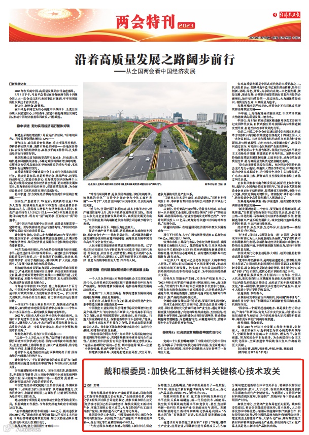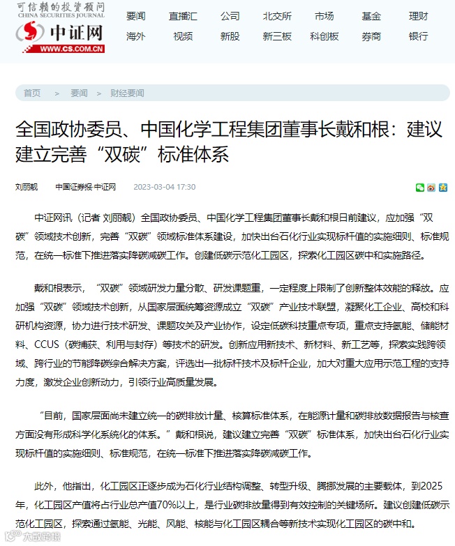 戴和根提案观点被科技日报、经济参考报、中国证券报等多家主流媒体刊发,为我国加快推进落实“双碳”战略目标,加速发展化工新材料产业推动下游产业高质量发展提供了中国化学方案。
