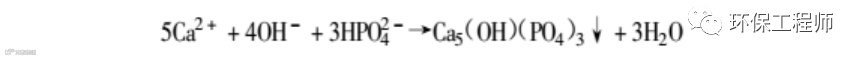 向含磷污水中加入氢氧化钙,污水的pH上升,同时污水中磷与钙反应生成 Ca5(OH)(PO4)3, 反应式如下: