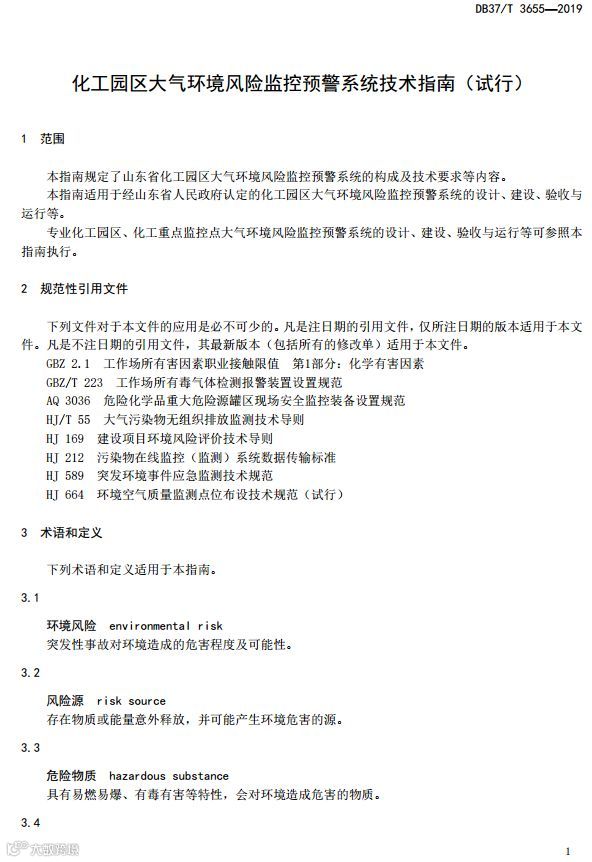 化工园区大气环境风险监控预警系统技术指南(试行)