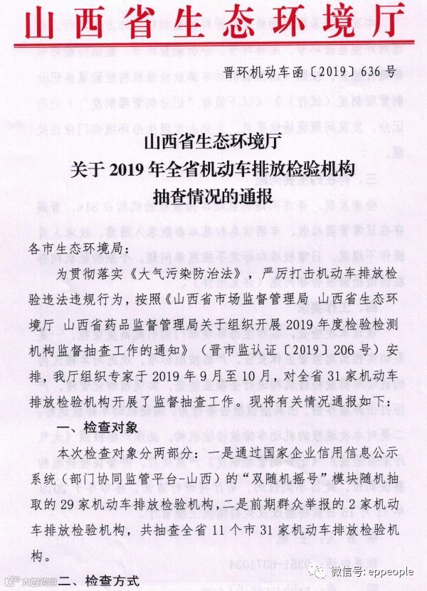今年9月至10月,山西省生态环境厅组织专家对全省机动车排放检验机构开展监督抽查。检查采取现场检查与资料核查相结合的方式,涉及通过国家企业信用信息公示系统随机抽取的29家机构以及前期群众举报的2家。