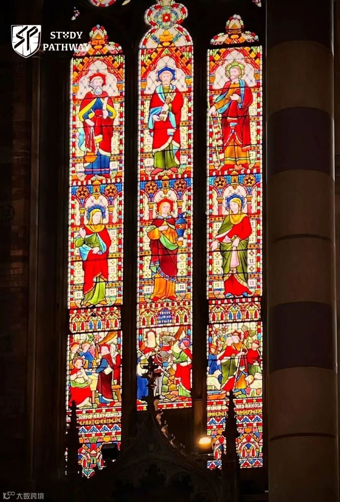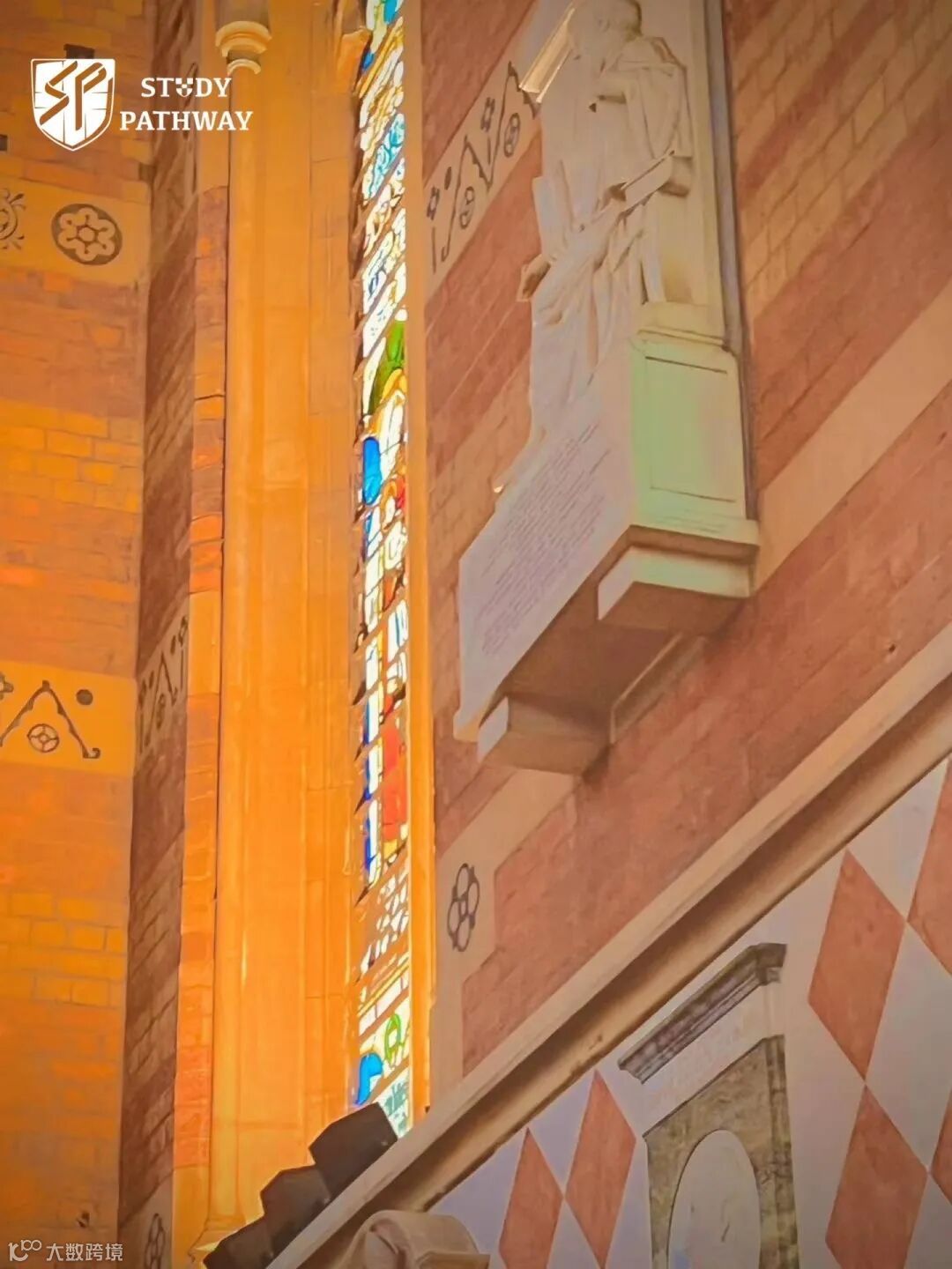 草草吃完午饭后便开始了下一项活动,一位英国老师带领我们来到了一幢小屋,墙上挂着许多照片,旁边是介绍。他为我们介绍这所学校的历史,不知不觉间已经来到了一座教堂,桌上摆放着乐谱,教堂装修十分华丽,令人神往。