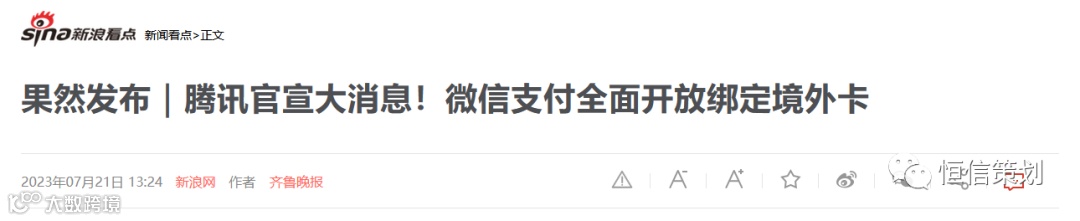 微信支付全面开放绑定境外卡单笔200元以下免收3%手续费
