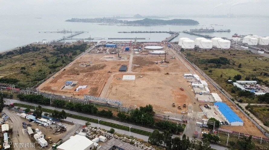 阳江LNG项目现场在台风停工后全面复工复产,克服了现场初期通行受限的困难,正在热火朝天地进行1号及2号储罐桩基施工,打桩机在场内轰鸣,材料运输卡车不间断地通过跨海临时道路将材料运往作业面,一派“大干90天、实现新跨越”的气象,11月底完成50%储罐桩基施工是阳江LNG项目即将迎来的首个正式工程节点,项目组正在朝着这个节点目标奋力推进。每天夜班开工前,现场都会准时吹响夜间施工号,全体人员准时到岗,定点定岗定责任,严格按照计划倒排时间进度,全力推进各项工作。