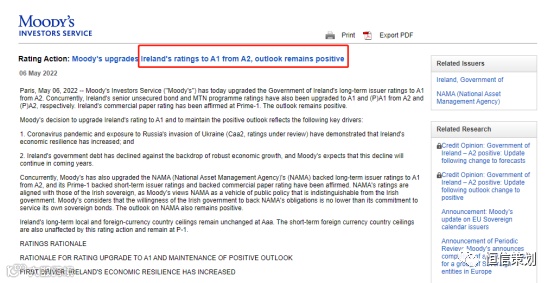 其实,此次评级是继DBRS晨星和惠誉评级后,爱尔兰在2022年第三次得到知名评级机构的认可,不仅增强了投资人对爱尔兰主权债务的信心,更加强了爱尔兰在吸引投资及增加国家债权流动性的能力。