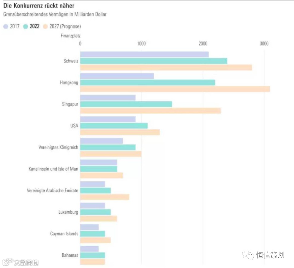 《新苏黎世报》指出,香港的大部分资金来自中国内地。中国的经济发展速度越快,香港作为全球金融中心越受益,新加坡也会受益于内地和香港的客户。BCG预计,到2027年,香港将成为唯一一个管理超过3万亿美元境外资产的金融中心,排名第一,瑞士和新加坡分别排第二和第三。
