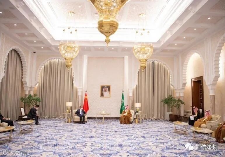 到访沙特的国务委员兼外长王毅与沙特王储穆罕默德会面。