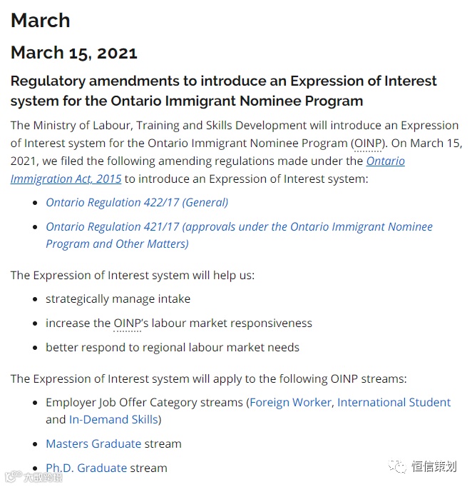 加拿大当地时间2021年3月15日,安省移民局公布即将对省提名移民项目实行打分制(EOI),细则将在未来数周出台。