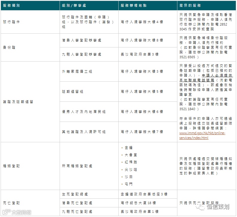 此外,入境事务处目前只提供以下公共服务。尚未开放的公共服务,还请大家可以耐心等待。