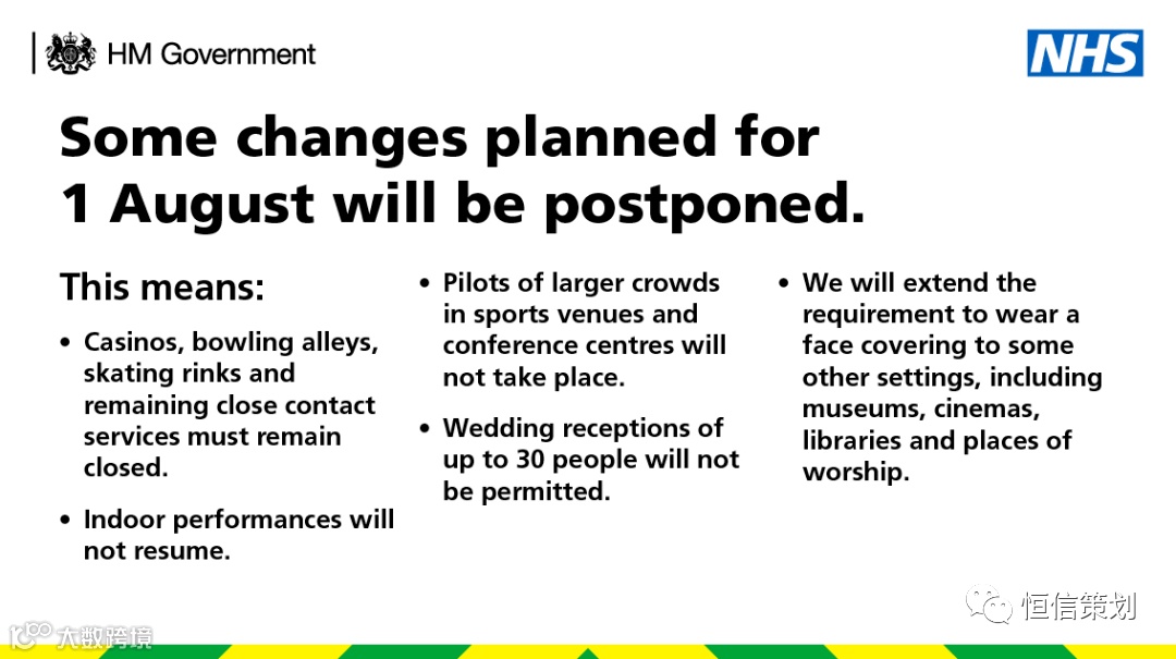 暂缓此前计划于8月1日起实施的进一步解封措施,并对感染值上升明显的大曼彻斯特地区实施局部封锁。