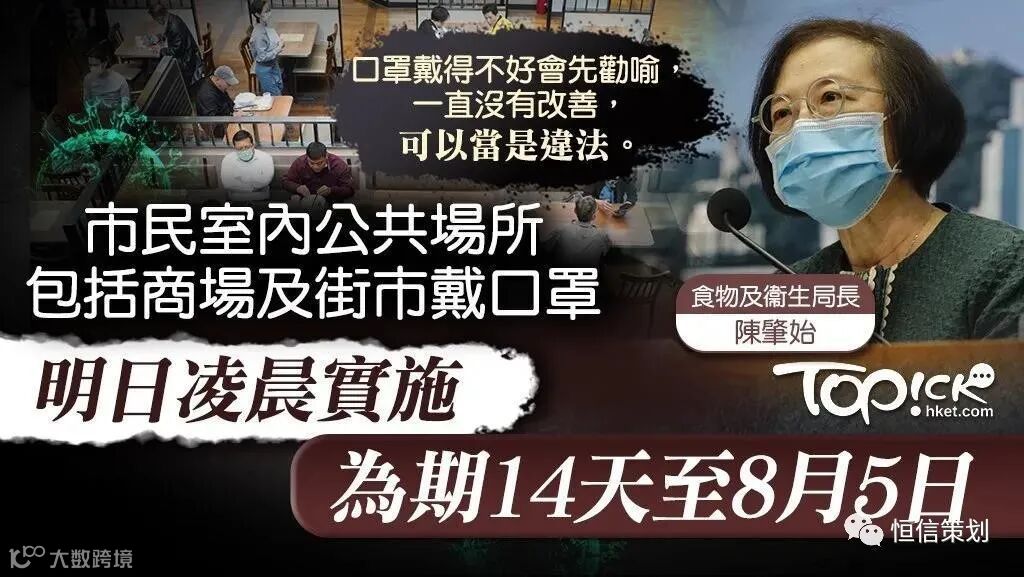 据香港东网报道称,由于新冠肺炎疫情持续恶化,香港特区政府继早前实施乘搭公共交通工具时强制戴口罩,