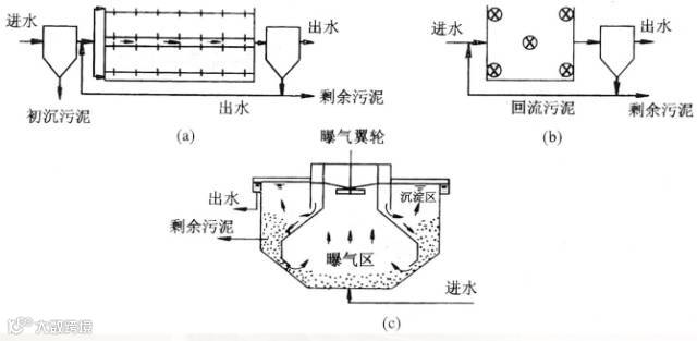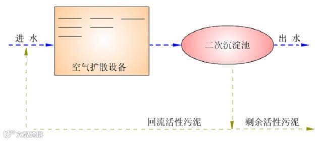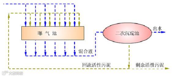 (a) 采用扩散空气曝气器的完全混合活性污泥法工艺流程;