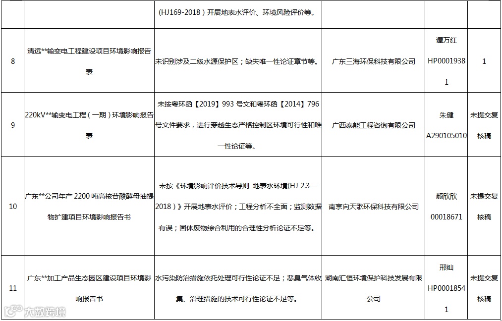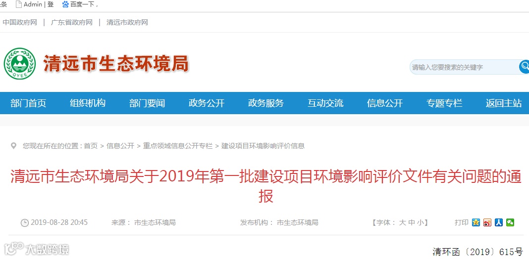 清远市生态环境局关于2019年第一批建设项目环境影响评价文件有关问题的通报