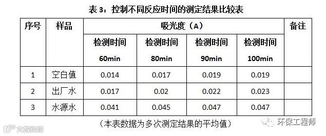 实验表明,反应时间在90min之前,溶液显色不完全,90min之后颜色趋稳定,因而,用水杨酸分光光度法测定水中氨氮时,显色时间应控制在90min之后,达到分析的精密度和准确度。
