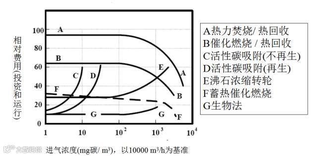 相较与直接燃烧法其辅助燃料费用低,二次污染物NOx生成量少,燃烧设备的体积较小,VOCs去除率较高;