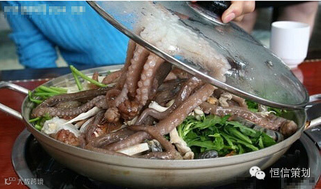 活章魚;韓國與一動不動的死魷魚不同,韓國章魚菜送出來時,章魚還會動。內行稱這種菜要趕緊吃。