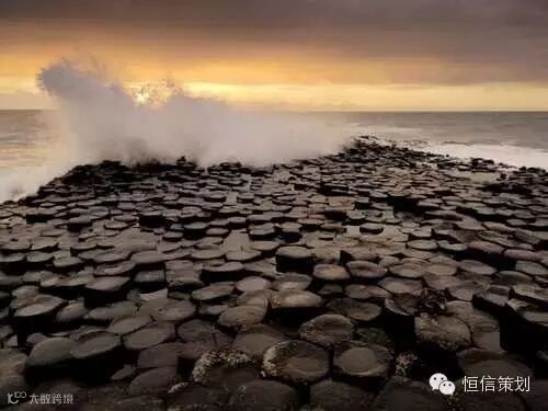 海灘上不一定都是沙!這些排列整齊的石柱位於愛爾蘭的海邊,是玄武岩經融化和硬化後形成的。