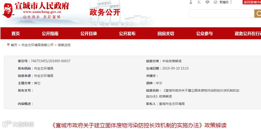 《宣城市政府关于建立固体废物污染防控长效机制的实施办法》政策解读