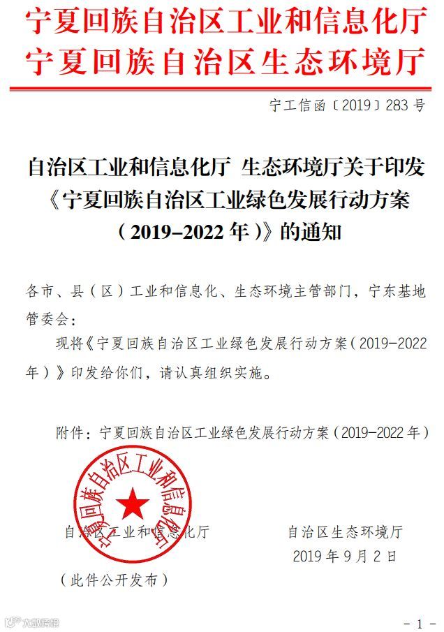 日前,宁夏回族自治区发布《宁夏回族自治区工业绿色发展行动方案(2019-2022年)》,详情如下: