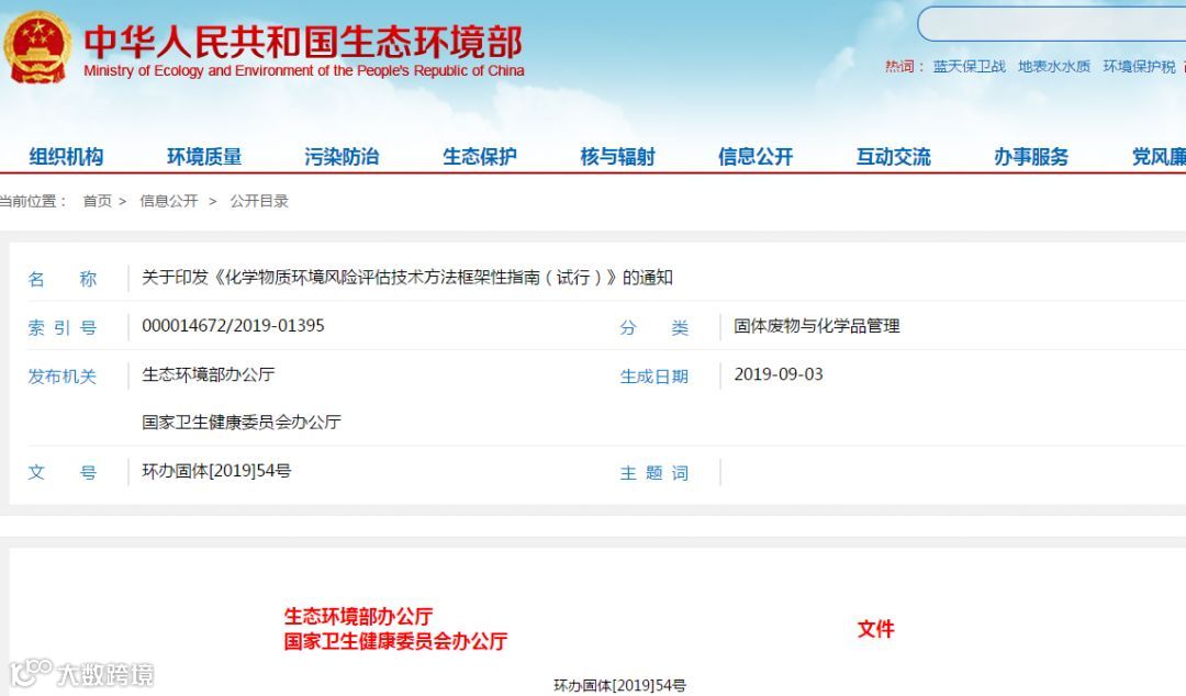 关于印发《化学物质环境风险评估技术方法框架性指南(试行)》的通知