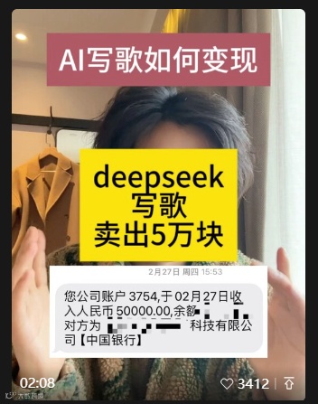 据新闻报道,28岁的程序员杨平用DeepSeek写歌,模仿周杰伦风格创作出爆款单曲《七天爱人》,在网易云音乐平台播放量突破200万次,评论超4600条,光是歌曲版权就卖出了五位数,他本人也成为全网热议的“AI音乐教父”。