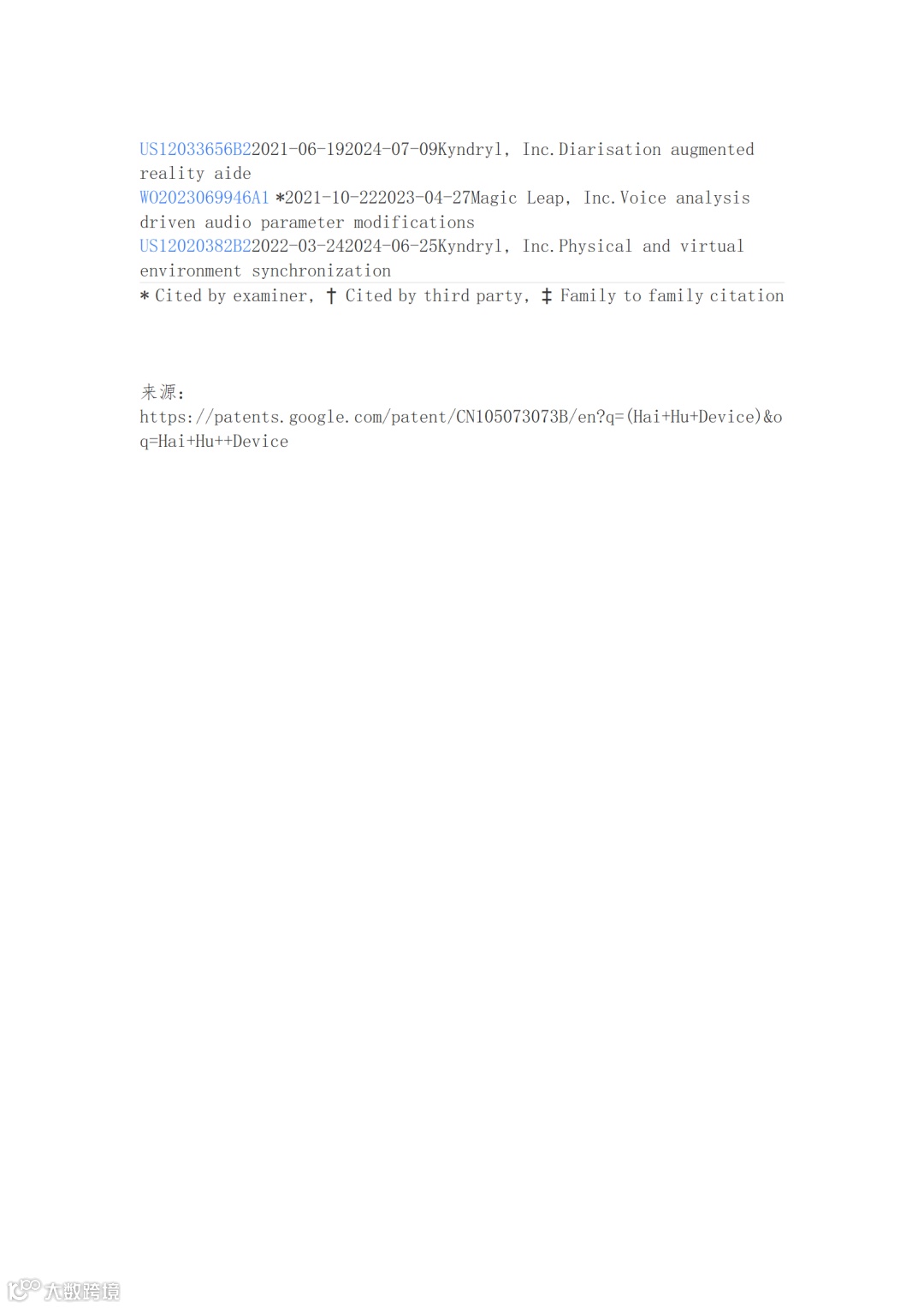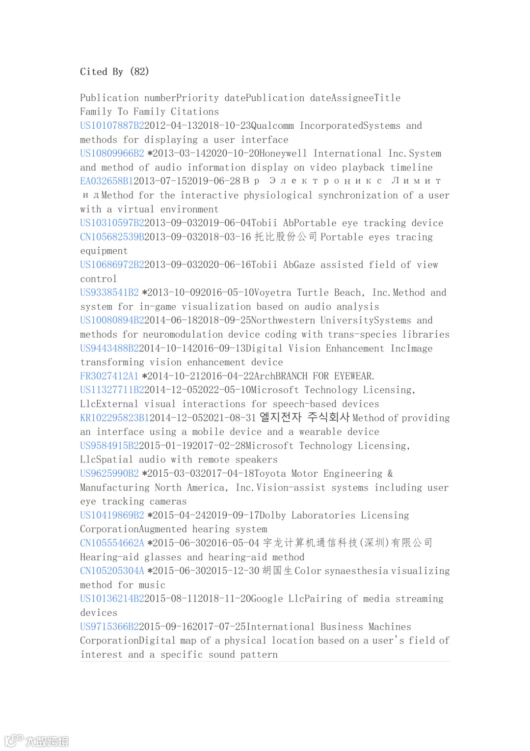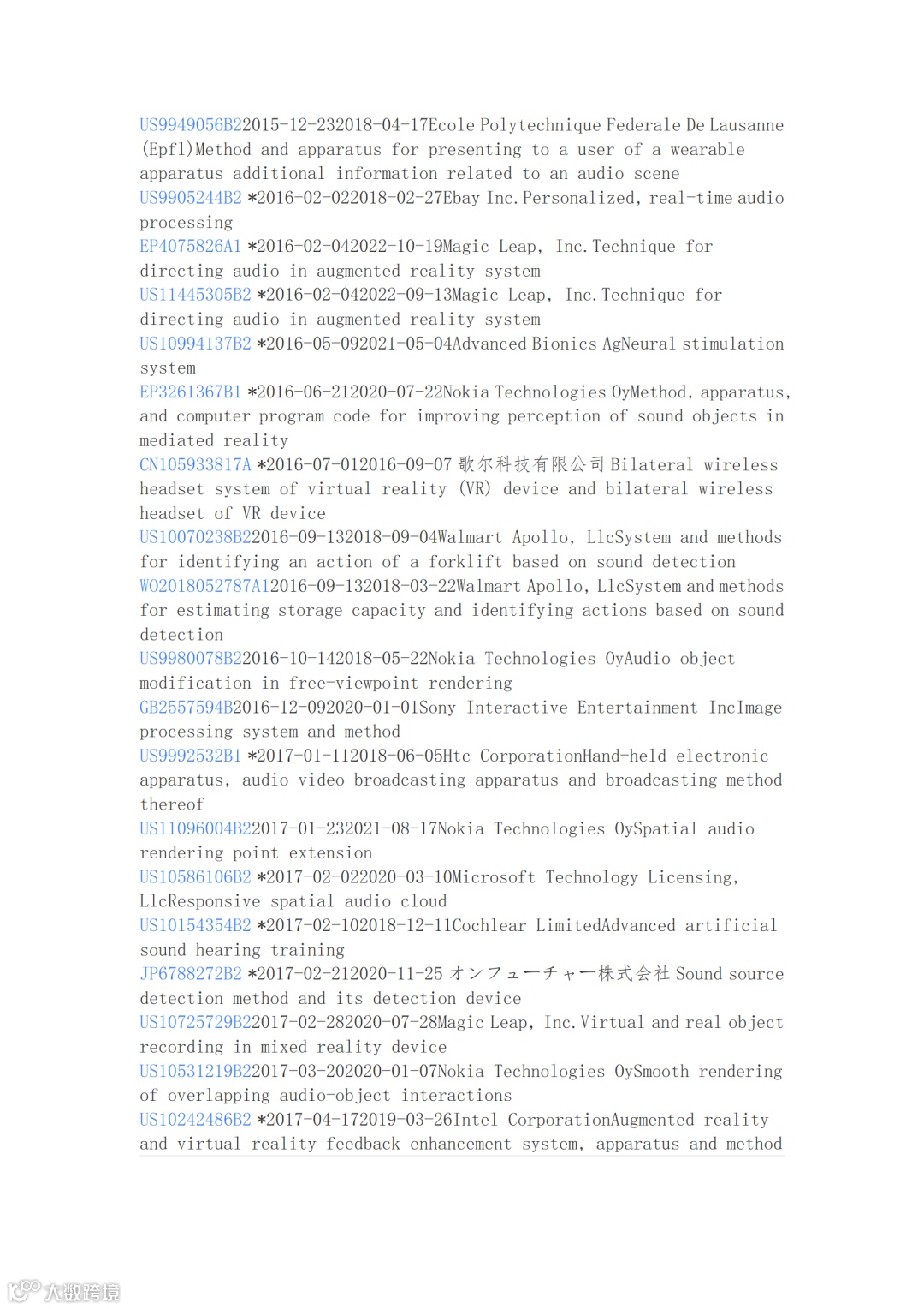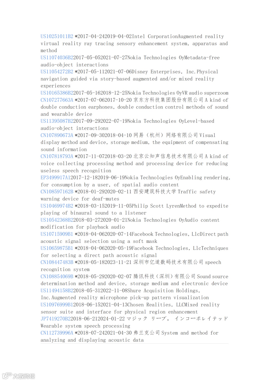该专利“用于声音可视化及声源定位的设备与方法”已被谷歌、IBM、微软、高通、苹果、英特尔、Facebook、Ebay、Magic Leap、诺基亚、Sony、歌尔科技、京东方、网易、腾讯、阿里巴巴、Oppo等82家大公司/机构引用(见文末)。