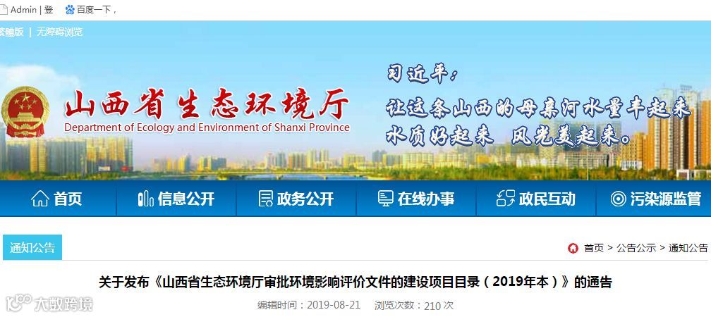 关于发布《山西省生态环境厅审批环境影响评价文件的建设项目目录(2019年本)》的通告