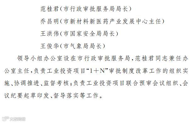 淄博市工业投资项目“1+N”审批制度改革实施意见