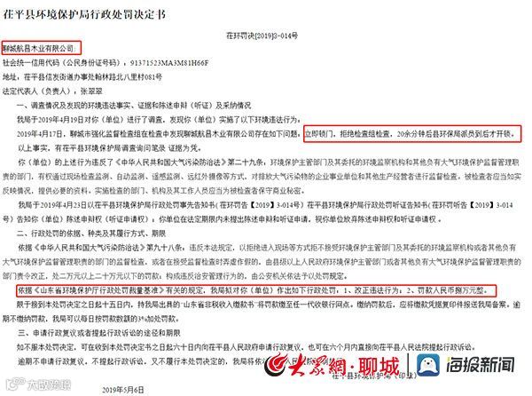 大众网茌平·海报新闻5月9日讯(见习记者 牛怡然)近日,茌平环境保护局对聊城航昌木业有限公司发布行政处罚决定,被罚款八万元整。