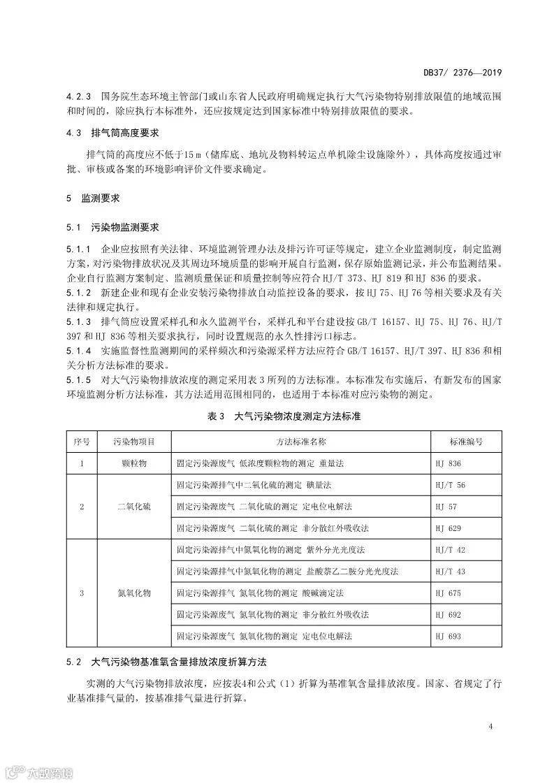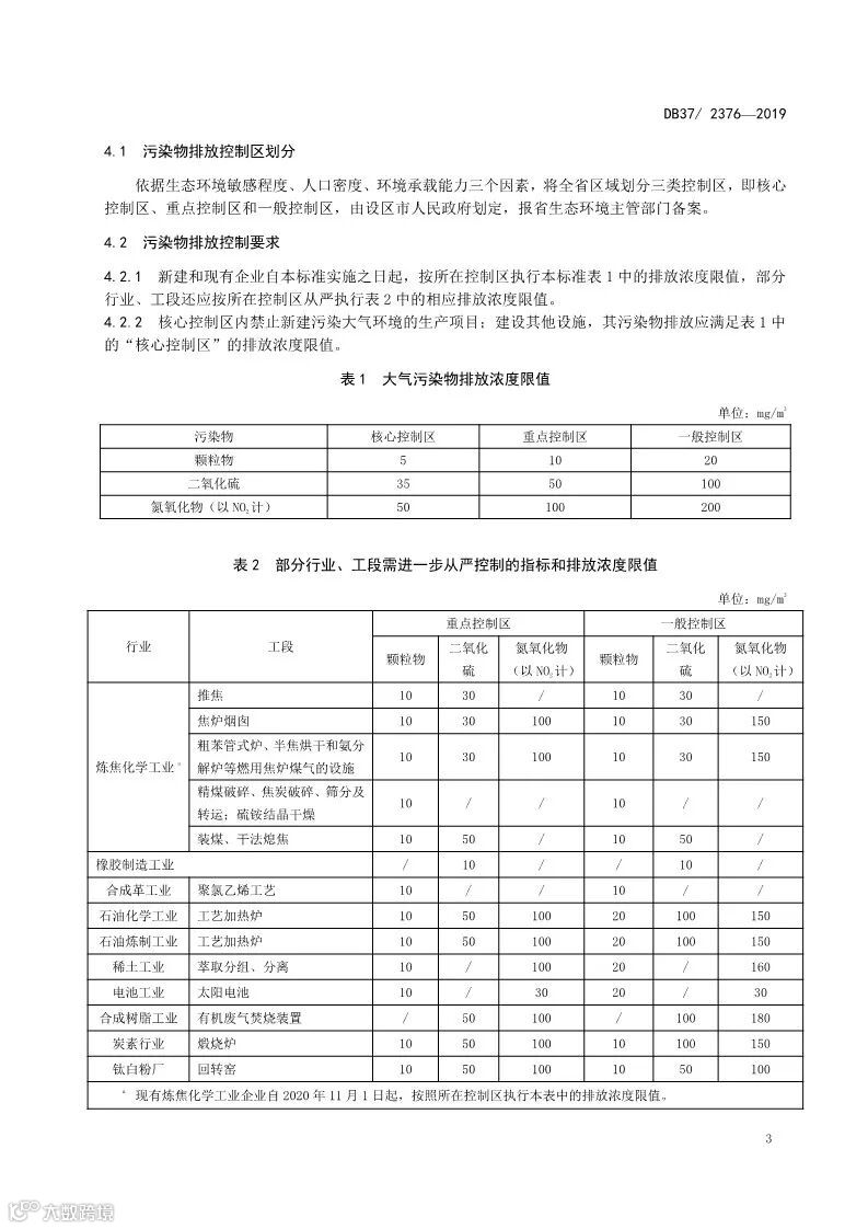 此前,我省已经发布了部分行业标准。至此,我省主要大气污染物排放标准已全部发布完毕,包括1项区域性大气污染物综合排放标准,5项分行业排放标准,与我省已发布的8项挥发性有机物排放标准(DB37/ 2801),共同构建起完备的“1+5+8”大气污染物排放标准体系。
