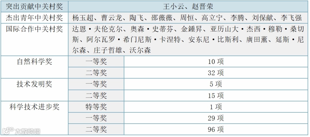 42项成果荣获自然科学奖,包括一等奖10项,二等奖32项;20项成果荣获技术发明奖,包括一等奖5项,二等奖15项;126项成果荣获科学技术进步奖,包括特等奖1项,一等奖29项,二等奖96项。